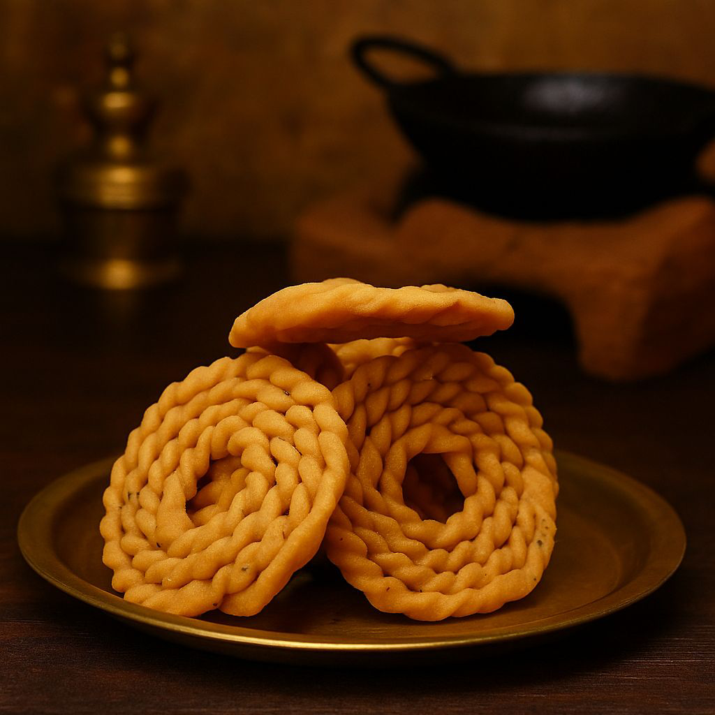 Kai Murukku is a beloved South Indian snack that brings authentic taste and tradition to your table. These delicate, spiral-shaped treats are crafted with rice flour and lentils, delivering a perfect crunch with every bite. Each pack contains 5 pieces of freshly made murukku, perfect for tea-time indulgence or sharing with loved ones. The 4-line design showcases traditional craftsmanship, making it a genuine choice for those who appreciate homemade quality. Enjoy the rich, savory flavors that have made this snack a timeless favorite across generations.